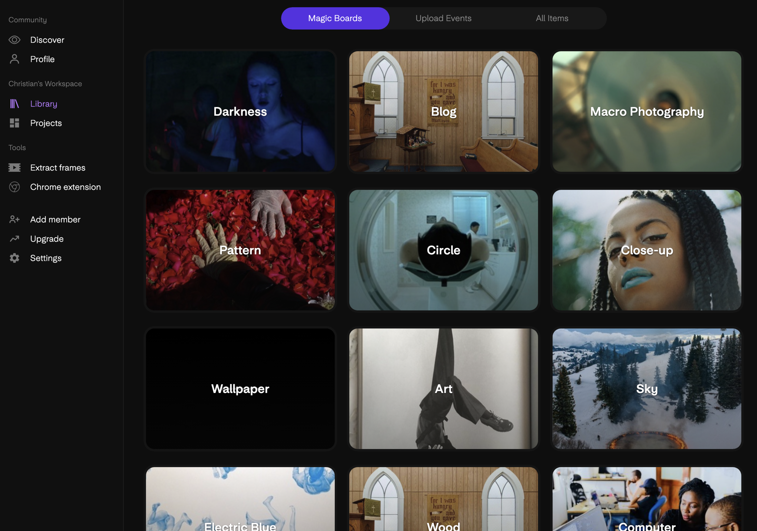 They also have an excellent image extractor that allows you to upload a film, and they will extract frames from that film to add to your library. It's swift and easy. Swear. You can also browse through recently uploaded images from users to add their pictures to your library. Again, it's a game-changer. I've used Kive.ai more than any app in recent months.